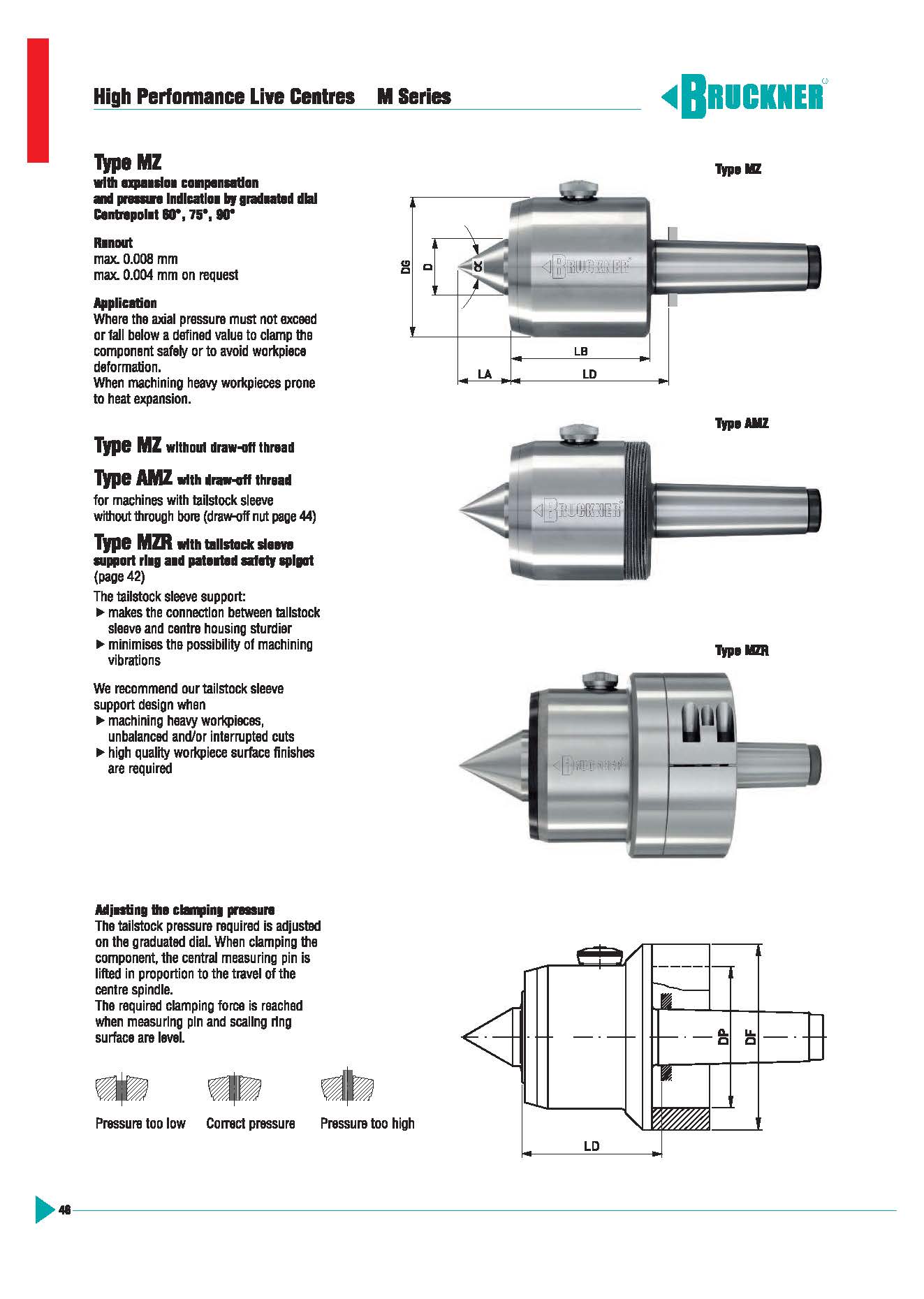 活頂尖在重載刀具受力系統(tǒng)中起著重要作用,在最后的加工效果中起著決定性的角色,Bruckner的設計尤其適用于高要求的重載加工。很大的允許負載依據(jù)錐度直徑尺寸。